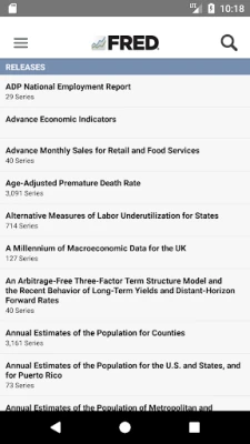 Získejte ekonomická data, která potřebujete, s aplikací FRED. Přístup k více než 508 000 datovým řadám z mnoha zdrojů, kdykoli a kdekoli. Obsahuje grafy z databáze St. Louis Fed. Ideální pro studenty, profesionály i akademiky.