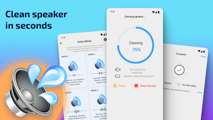 Aplikace vyhazovač vody & Dust app rychle opraví špatný zvuk reproduktoru. Odstraní vodu a prach, které se dostaly dovnitř, a vyčistí reproduktory za pouhých 45 sekund, obnovujíc čistý zvuk.