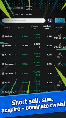 Ponořte se do světa "Selfmade Billionaire", kde se snoubí strategické řízení firem s dynamickým obchodováním na burze. Zažijte jedinečnou výzvu a budujte své impérium. Staňte se miliardářem díky chytrým rozhodnutím.