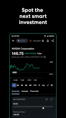 Srdcem vaší investiční strategie se stane záložka „Domů", kde můžete sledovat výkonnost svého osobního portfolia. Propojte svá stávající portfolia s Yahoo Finance a mějte přehled o svých držených aktivech kdykoliv a kdekoliv. Na první pohled uvidíte denní výkonnost a získáte okamžité cenové kotace a personalizované zprávy pro vámi sledované akcie. Dostávejte push oznámení z klíčových trhů, abyste byli vždy v obraze. Prozkoumejte detailní finanční data, včetně historických výkazů, hodnocení ESG a hlavních držitelů. Jděte nad rámec akcií a sledujte měny, komodity, světové indexy a futures. Interaktivní grafy na celou obrazovku vám umožní snadno porovnávat a vyhodnocovat různé instrumenty.