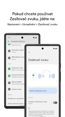 Zesilovač zvuku usnadňuje nedoslýchavým lidem každodenní konverzace a zpřístupňuje okolní zvuky. Pomocí Android telefonu a sluchátek aplikace filtruje, vylepšuje a zesiluje zvuky ze zařízení i z vašeho okolí pro lepší srozumitelnost.