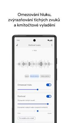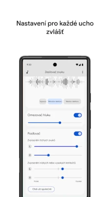 Díky pokročilým funkcím Zesilovač zvuku překonává běžné poslechové limity. Zapněte režim konverzace, dostupný na telefonech Pixel 3 a novějších, a nechte aplikaci inteligentně filtrovat hlas mluvčího v hlučném prostředí, což dramaticky usnadní vzájemné dorozumění. Aplikace vám navíc umožňuje přizpůsobit zvukový profil přesně podle vašich potřeb. Můžete snížit okolní hluk, zesílit tiché pasáže, nebo vyladit hluboké či vysoké tóny pro optimální zážitek z poslechu – a to buď pro obě uši dohromady, nebo individuálně pro každé zvlášť. Pro poslech vzdálenějších zdrojů, jako je televize nebo přednášky, doporučujeme spárování s Bluetooth sluchátky, i když je třeba vzít v úvahu případné drobné zpoždění zvuku.